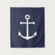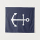 Modernes Minimalistisches Nautical Tapestry mit weißem Anker auf marineblarem Hintergrund. Perfekt als Strandhaus Dekoration, Hauswärme Geschenk und mehr.