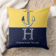 Nautic Navy Blue Mustard Yellow Anchor Monogram Kissen