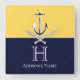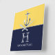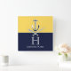 Nautic Navy Blue Mustard Yellow Anchor Monogram Quadratische Wanduhr