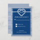 Modernes nautisches Hochzeitstil-Design mit einem skurril-romantischen weißen Herz, das in einem marineblauen Rahmen mit Seilakzenten und Streifen dargestellt ist. Weiße Schrift. Klassische marineblau-blaue und weiße Farbe.