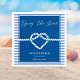 Moderne Hochzeitsservietten mit einem skurrile weißen Herz, das in einem marineblauen Rahmen mit Seilakzenten und Streifen dargestellt ist. Weiße Schrift. Klassische marineblau-blaue und weiße Farbe.