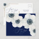 Das marineblau-weiß-Save the Date Postkartendesign der Nautical Boutique Co. zeichnet sich durch moderne, fließende Schrifttypografie aus, die mit dem lassend klassischen Blockdesign kombiniert wird. Es ist mit wunderschönen Aquarellblumen aus weißem Anemonenblüten mit blauen Mittelpunkten mit nautischer Seillinie und Set auf einem knusprigen weißen Hintergrund versehen. Die Rückseite ist marineblau mit übergroßen weißen Anemonenblumen. #Nautical #Anemone #SaveTheDate #RedWhiteBlue