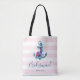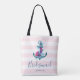 Nautische Bräunungstasche mit Anker mit Blume auf einem rosa Streifen Hintergrund.