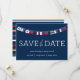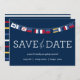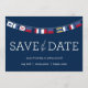 Dieses Save the Date ist mit nautischen Fahnen gestaltet und wäre ideal für jede Hochzeit am Wasser!