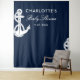 Die moderne nautische Marine blauen Anker Script Baby Duwer Hintergrund Tapestry, die Sie leicht anpassen können, indem Sie auf die Schaltfläche "Personalisieren". Die elegante und minimalistische Babydusche mit Bootanker und moderner Typografie auf marineblau-blauem Hintergrund.