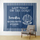 personalisierte Junggeselinnen-Abschied-Tapisserie zum Thema Wassersport an der Küste in Blau und Weiß mit Muschel und Perle ist perfekt als Junggeselinnen-Abschied Foto Hintergrund. Mit dem Slogan "letzter Toast an der Küste". Feiern Sie Ihr Brautparty stilvoll mit dem passenden Wassersport-Party, dem Leitmotiv der nostalgischen Vintagen Segelbride und ihrer Brautjungfrauen.