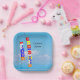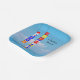 Seeschifffahrts- oder nautische Signalflaggen mit Happy Birthday, die auf einer Linie vom Masthead hinunter zum Tffrail am Bug eines Segelbootes, Fischerbootes oder Kreuzfahrtschiffes hängen, über einen blauen Himmel und Wolken mit dem Horizont in der Ferne. Benutzerdefinierter Text im Inneren, um Ihre Geburtstagsbotschaft für einen Fischer, Bootsführer, Seefahrer oder einen salzigen Seemann hinzuzufügen.
