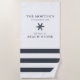 Das Nautical Beach Handtuch ist mit Seestern und Streifen gestaltet. Personalisieren Sie den benutzerdefinierten Text mit einem Familiennamen und Strandhaus (oder einem anderen Titel) mit dem Jahr festgelegt und Ort. Hale Marine blau-weiß Farbe Schema.