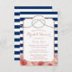Brautparty Nautical Rose Gold Blumenzauber binden die Knot Navy Blue Streifen Einladungen.