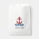 Nautic Hochzeit Thema weißes Papier Gefallen Tasche, mit Grafiken eines roten Ankeres und blau geknüpfte Seil. Personalisieren Sie den blauen Text für Ihre Hochzeitsveranstaltung. Ideal für Süßigkeiten, Popcorn und andere Vorzüge.