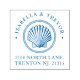 Klassische und moderne Briefmarke mit nautischen Themen. Die Briefmarke sind in einem Vintagen Stil mit einer Darstellung der Wassermuscheln, umgeben von Braut und Bräutigam. Darunter befindet sich eine E-Mail-Adresse. Alle Elemente dieses Elements sind über die Anpassungsfunktion einstellbar.