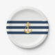 Nautic Wedding Gold Anchor Navy Stripes Pappteller