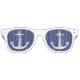 Diese nautische Brille hat einen weißen Anker auf einem marineblauen Hintergrund.