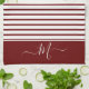 Modern Nautical Rust Maroon Burgundy White Striped Monogram erste Elegante Chic Küchentuch Set Design von Sandy Closs
