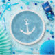 Zeichnend nautischer Anker. Maßgeschneiderte blaue Aquarellpapier-Teller. Idee zur Dekoration der Babydusche.