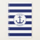 Dieser nautische Planer hat einen marineblauen Anker mit einem runden Seilrücken. Über dem Anker steht "Kapitän" und unten ist Ihr Name, um die Rückseite des Planers zu personalisieren. Die Streifen sind blau und weiß. Das perfekte Geschenk für ihn.