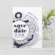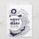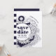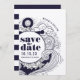 Stilvolles Navy Blue und White Nautical Theme mit handgezeichnetem Tätowierungsanker mit Blume und Wellen
