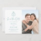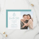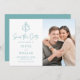 Diese elegante aqua blau nautische Hochzeit speichern die Dattelkarte hat ein Ankermonogramm über dem Text, stilvolle Handschrift für die "Save the Date" Ankündigung, und ein Foto des glücklichen Paares.