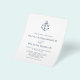 Dieses elegante minimalistische nautische Hochzeitsdesign mit einem Ankermonogramm oben mit den Initialen der Braut und des Bräutigams, einem schlichten weißen Hintergrund und einem marineblauen, klassischen eleganten Text und einer Touch von Schriftzeichen für das "und". Die Rückseite hat einen passenden marineblauen Hintergrund. Dieses Budget Küstenhochzeit Einladung ist eine kleinere Größe gedruckt auf billigerem Papier, ohne einen Umschlag. Wenn Sie eine andere Budgetversion auf etwas besserem Papier mit einem Umschlag wünschen, der etwas mehr kostet, kontaktieren Sie mich bitte über den Zazzle Chat, oder nutzen Sie die Transferoption um auf ein "flaches Blatt" 4.5"x 5.6" zu übertragen.