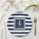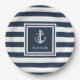 Nautical Anchor Rope Boat Name Navy Blue Striping Pappteller