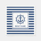Nautical Anchor Rope Wheel Navy Blue and White Striped Boat Name Paper Napkins