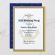 Nautischer Anker Thema Geburtstagsfeier Einladung für ihn. Typ Party Custom lädt in marineblau mit einem großen Ankerhintergrundbild für Marine Text. Für jede Art von Anlass verwenden. Kleines goldenes Ankermuster auf der Rückseite über dunkelblau.