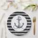 Nautical Anchor Silver Black Stripes Wedding Pappteller