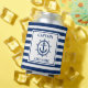 Nautical Navy Blue Striping Anker Rope Wheel Kapitän Name White Frame kann kühlen