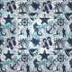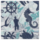 Eine lustige Sommer-Collage von nautischen Elementen und Text inklusive Anker, Seagull, Seestern und vieles mehr, alles in Marineblau mit Wirbel und Wave aqua blauen Akzenten. Mit diesem neuen, auffälligen Muster kreieren Sie Beachhouse oder Innenhof-Dekoration, Strandbekleidung oder Bootkleidung. Suchen Sie ID839 um weitere Produkte mit diesem Design und weiteren Farboptionen zu sehen.