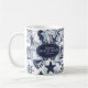 Diese Tasse bietet ein lustiges sommerliches Wassersportzentrum mit Anker, Seegras, Seestern und vielem mehr, alles in Marineblau mit Wirbel und wasserblauen Akzenten. Fügen Sie Ihren Namen und/oder anderen Text mit der bereitgestellten Vorlage hinzu. Suchen Sie ID839 und ID840, um weitere Produkte mit diesem Design und weiteren Farboptionen zu sehen.
