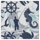 Ein lustiges Sommermuster von nautischen Elementen wie Anker, Seagull, Seestern und viele mehr, alles in Marineblau mit Wirbel und Wellenaqua blauen Akzenten. Mit diesem neuen, auffälligen Muster kreieren Sie Beachhouse oder Innenhof-Dekoration, Strandbekleidung oder Bootkleidung. Suchen Sie ID839 um weitere Produkte mit diesem Design und weiteren Farboptionen zu sehen.