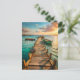 Step into a moment of tranquility with this beautiful coastal postcard. A weathered wooden pier stretches out over calm turquoise water, leading toward gently bobbing boats and a golden sunset sky. The painterly detail and warm, reflective light create a serene, wanderlust-filled scene. Perfect for sending vacation greetings, thoughtful notes, or sharing a peaceful seaside feeling with someone special.
