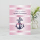 Nautical Blue Anchor Pink BG V Wedding Einladung