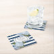 Das Nautical Blue Hydrangea White Striping Floral Art Square Paper Untersetzer rundet Ihr elegantes Brautparty- oder Hochzeitsempfang mit einer personalisierten Botschaft für Ihre Gäste ab. Schöne, romantische, blaue Hydrangeas in hellen Pastelltönen mit Blattfolien sind das perfekte Gegenstück zu den knackigen Marineblau und weißen, breiten, horizontalen Streifen für eine frische und zeitlose Party-Dekoration. Kunst von international lizenziertem Künstler und Produktdesigner Audrey Jeanne Roberts, Copyright.
