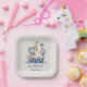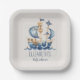 This cute paper baby boy baby shower party plate features an adorable sailing ship in soft watercolor shades of nautical blue. Personalize the front with your choice of name and special text.