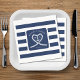 Nautical Blue Striped Heart Anchor Wedding Serviette