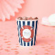 Ein einfaches marineblau-weiß gestreiftes Muster mit personalisiertem Text. Ein ideales nautisches Design für eine Baby-Jungen-Duschpapiertasse. Passen Sie den Text an und machen Sie ihn zu Ihrem eigenen. Anzeigen entsprechender Elemente in dieser Auflistung