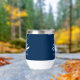 These modern stylish navy blue and white nautical thermal wine tumblers, feature a stylized ship’s wheel and ocean waves, with custom boat name and registry. Check out the collection for matching products. If you would like other colorways or more matching products, please contact me through Zazzle Chat.
