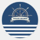 Nautical Boat Wheel, Navy Blue Streifen Runder Aufkleber