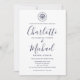 Nautical Compass Navy Blue Script Hochzeit Einladung