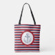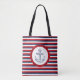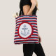 Schönes Design mit handgezeichneter Ankerdekoration auf blau, rot und weiß gestreiftem Hintergrund