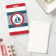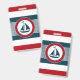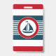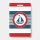 Schönes Design mit runder Dekoration der Segelboote auf blau, rot und weiß gestreiftem Hintergrund