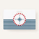 Nautisches Design mit Kompassdekoration in runder Form auf blau-weiß gestreiftem Hintergrund