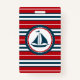 Schönes Design mit runder Dekoration der Segelboote auf rot, blau und weiß gestreiftem Hintergrund