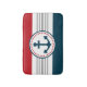 Nautisches Design mit Ankerdekoration in runder Form auf blau, rot, grau und weiß gestreiftem Hintergrund
