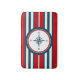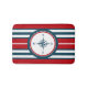 Nautisches Design mit Kompassdekoration in runder Form auf rot, blau und weiß gestreiftem Hintergrund