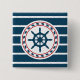 Nautisches Design mit runder Dekoration der Segelräder auf blau-weiß gestreiftem Hintergrund