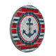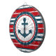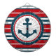 Nautisches Design mit Ankerdekoration in runder Form auf rot, blau und weiß gestreiftem Hintergrund