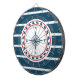 Nautisches Design mit Kompassdekoration in runder Form auf blau-weiß gestreiftem Hintergrund