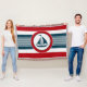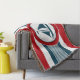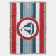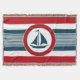 Schönes Design mit runder Dekoration der Segelboote auf blau, rot und weiß gestreiftem Hintergrund